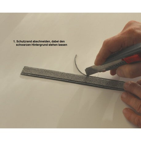 Unsere Materialen lassen sich am besten mit Schere oder Cuttermesser anpassen. Für die Verlegung empfehlen wir FLEX Glue grau.