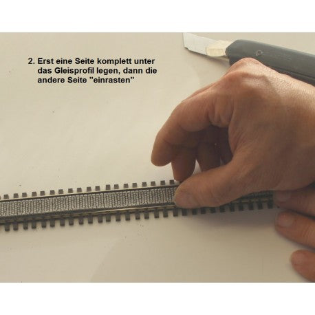 Stärke ca. 2 mm - Höhe muss individuell an das verwendete Gleisprofil angepasst werden! Geeignet für Gleisprofile ab 2,5 mm Höhe.